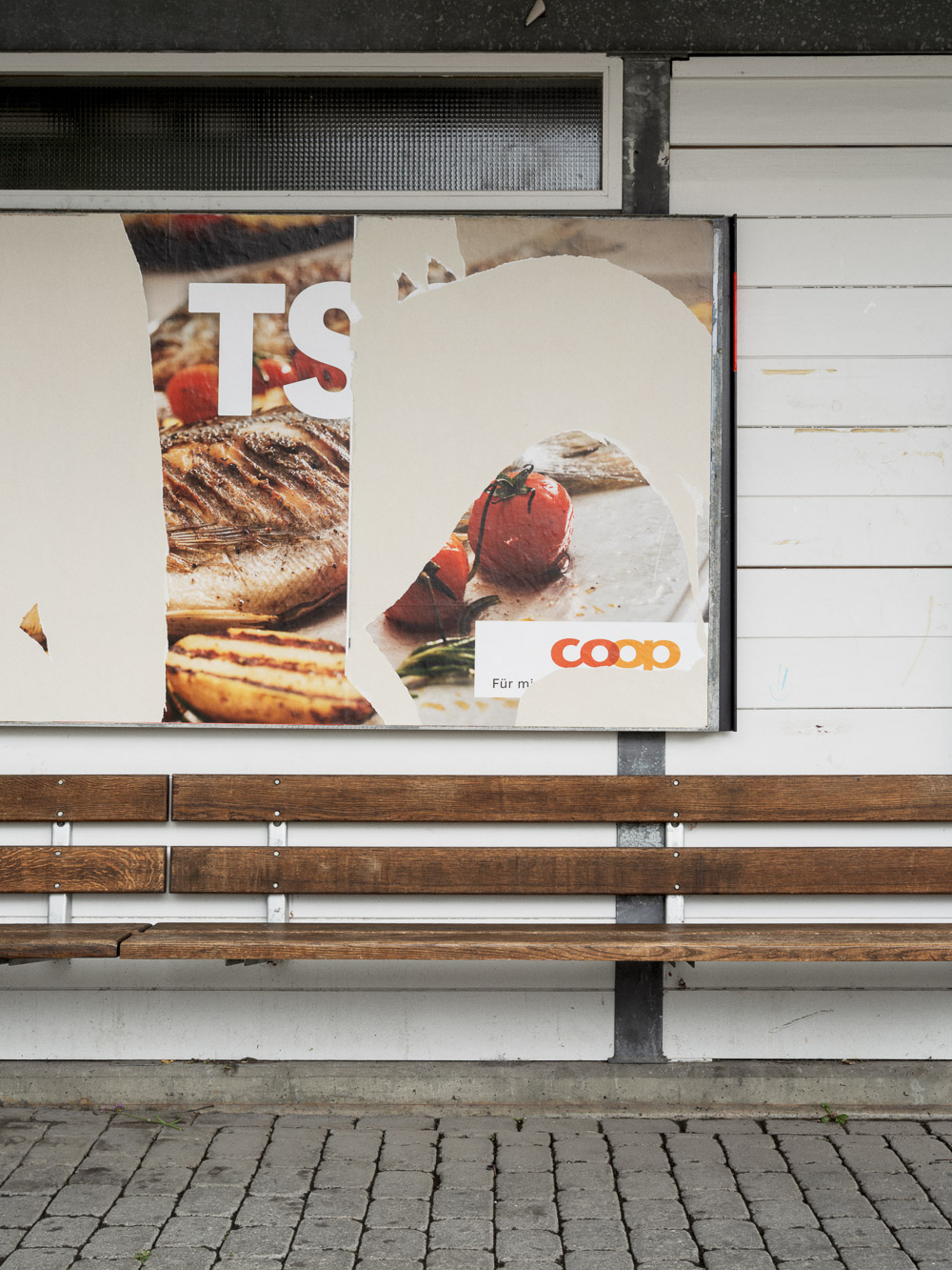 I-9327 Muenchenbuchsee, 2.8.2023. Bushaltestelle mit zerissenem Plakat. BACK Muenchenbuchsee, 2.8.2023. Bushaltestelle mit zerissenem Plakat. Zurück