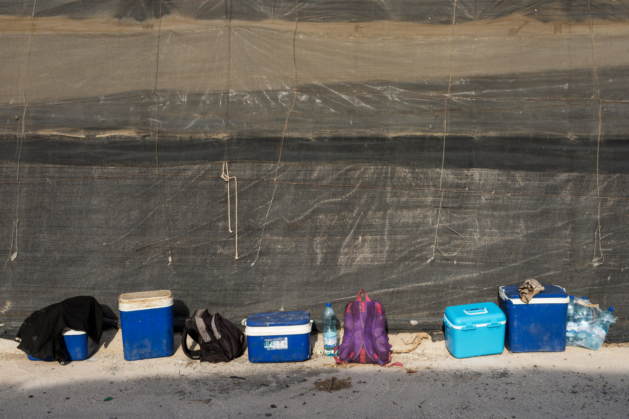 Las Norias de Daza, Andalusien. Spanien. 21.8.2024. Kuehlboxen mit Mittagessen von senegalesischen Erntehelfern.