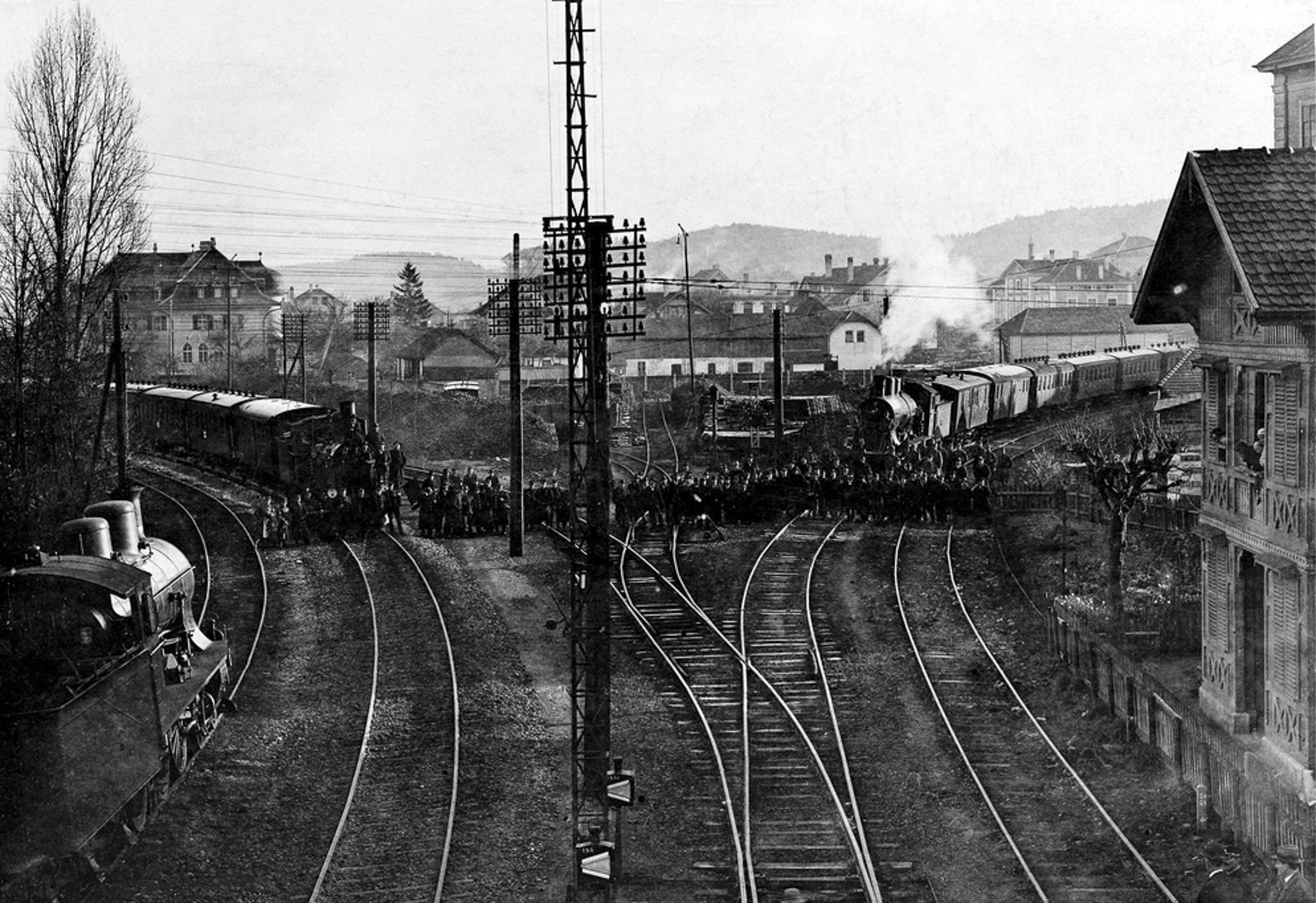 Am 12. November 1918 hielten Streikende in Biel zwei Eisenbahnzüge auf. Solche Blockaden hatten vor allem auch symbolische Bedeutung. Gretlers Panoptikum zur Sozialgeschichte.
